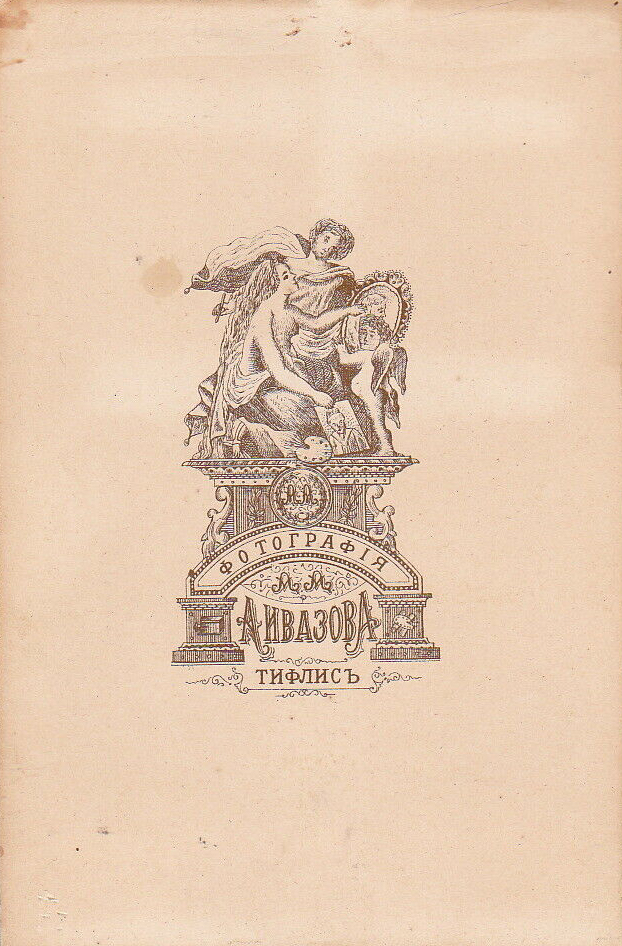 Ayvaz Ayvazov Ayvaz Ayvazov Title Couple with their child Region Russian Empire, Georgia Year 1900-1910s Decade 1900թթ Media gelatin silver photograph Genre group portrait Collection Lusadaran Armenian Photography Foundation, Yerevan Source Lusadaran Armenian Photography Foundation, Yerevan Ayvaz Ayvazov Title Untitle Region Russian Empire, Georgia Year 1890-1900s Decade 1890թթ Media albumen Genre group portrait Collection Lusadaran Armenian Photography Foundation, Yerevan Source Lusadaran Armenian Photography Foundation, Yerevan Ayvaz Ayvazov Title Man's portrait Region Russian Empire, Georgia Year 1900s Decade 1900թթ Media gelatin silver photograph Genre portrait Collection National Library of Georgia, Tbilisi Source National Library of Georgia, Tbilisi Ayvaz Ayvazov Title Portrait of three men Region Russian Empire, Georgia Year 1890s Decade 1890թթ Media gelatin silver photograph Genre group portrait Collection National Library of Georgia, Tbilisi Source National Library of Georgia, Tbilisi Ayvaz Ayvazov Title Men in national costumes Region Russian Empire, Georgia Year 1900s Decade 1900թթ Media gelatin silver photograph Genre ethnographic, group portrait Collection National Library of Georgia, Tbilisi Source National Library of Georgia, Tbilisi Ayvaz Ayvazov Title Dolgorukova Argutinskaya in national costume Region Russian Empire, Georgia Year 1900s Decade 1900թթ Media albumen Genre portrait Collection National Library of Georgia, Tbilisi Source National Library of Georgia, Tbilisi Ayvaz Ayvazov Title Constantine Joglidze with his sons Region Russian Empire, Georgia Year 1903 Decade 1900թթ Media gelatin silver photograph Genre group portrait Collection National Library of Georgia, Tbilisi Source National Library of Georgia, Tbilisi Ayvaz Ayvazov Title Studio backstamp Region Russian Empire, Georgia Year 1890s Source National Library of Georgia, Tbilisi Ayvaz Ayvazov Title Portrait of Stepan and Varvara Vaulins Region Russian Empire, Georgia Year 1890s Decade 1890թթ Media gelatin silver photograph Genre portrait Collection Collection of Mikhail Belov Ayvaz Ayvazov Title Portrait of a Woman in a Headscarf Region Russian Empire, Georgia Year 1890s Decade 1890թթ Media albumen Genre portrait Source EBAY, 2018 Ayvaz Ayvazov Title Ayvazov Studio Backstamp, Tiflis Region Russian Empire, Georgia Year 1890s Decade 1890թթ Source EBAY, 2019 Ayvaz Ayvazov Title Portrait of a European Officer, Tiflis Region Russian Empire, Georgia Year 1890s Decade 1890թթ Media albumen Genre portrait Source EBAY, 2019 ×