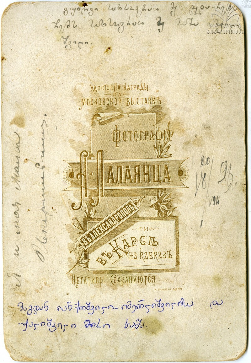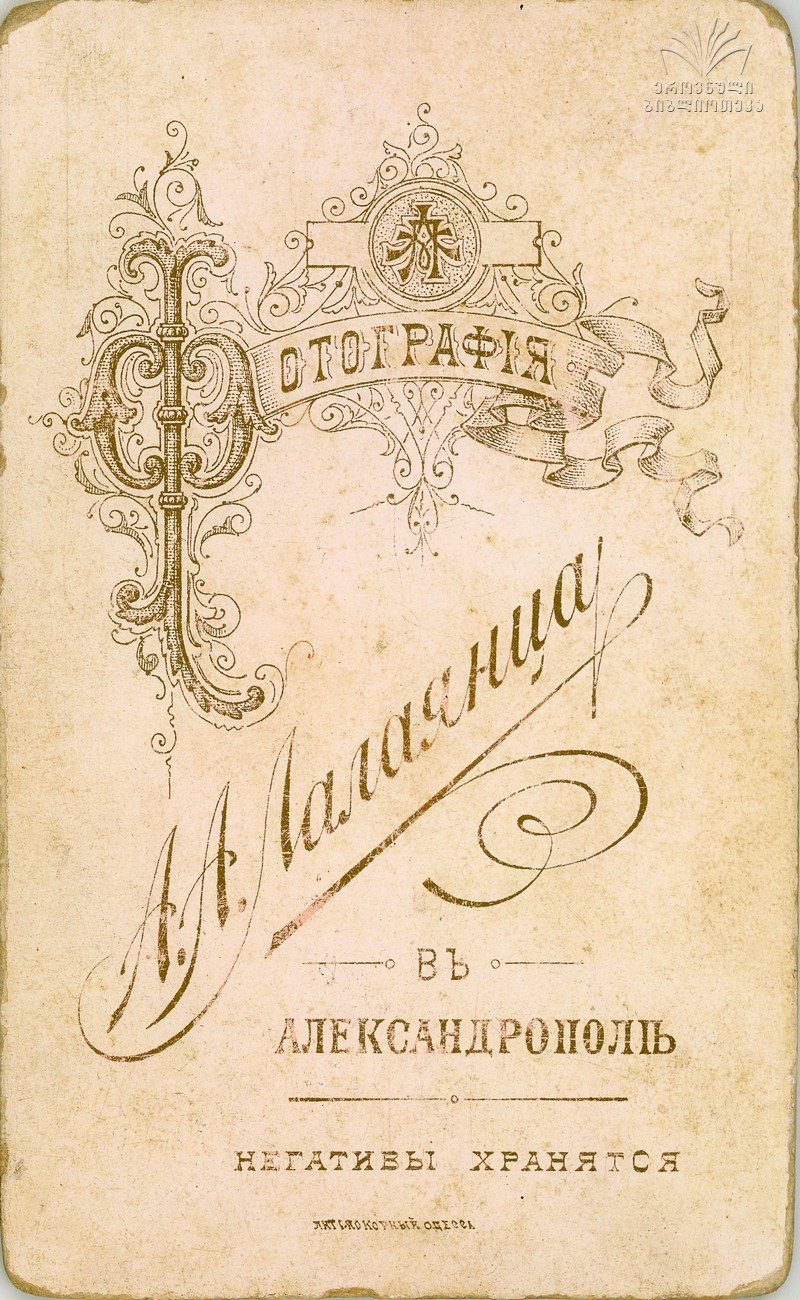 Artashes Lalayants Artashes Lalayants Title Group portrait Region Armenia, Russian Empire Year 1900s Decade 1900թթ Genre group portrait Collection Gyumri museum of vernacular architecture and urban culture Source Gyumri museum of vernacular architecture and urban culture Artashes Lalayants Title Studio backstamp Region Armenia, Russian Empire Year 1880s Decade 1880թթ Source National Library of Georgia, Tbilisi Artashes Lalayants Title Man in uniform Region Russian Empire, Georgia Year 1880s Decade 1880թթ Media albumen Genre portrait Collection National Library of Georgia, Tbilisi Source National Library of Georgia, Tbilisi Artashes Lalayants Title Studio backstamp (1) Region Russian Empire, Georgia Decade 1890թթ Source National Library of Georgia, Tbilisi Artashes Lalayants Title Studio backstamp (2) Region Armenia, Russian Empire Decade 1890թթ Source National Library of Georgia, Tbilisi Artashes Lalayants Title Portrait of Ms Masho Region Russian Empire, Georgia Year 1890s Decade 1890թթ Media gelatin silver photograph Genre portrait Collection National Library of Georgia, Tbilisi Source National Library of Georgia, Tbilisi Artashes Lalayants Title Mother and daughter Region Russian Empire, Georgia Year 1896 Decade 1890թթ Media albumen Genre group portrait Collection National Library of Georgia, Tbilisi Source National Library of Georgia, Tbilisi Artashes Lalayants Title Portrait of a young woman Region Russian Empire, Georgia Year 1900s Decade 1900թթ Media gelatin silver photograph Genre portrait Collection National Library of Georgia, Tbilisi Source National Library of Georgia, Tbilisi Artashes Lalayants Title Studio backstamp (3) Region Russian Empire, Georgia Decade 1900թթ Source National Library of Georgia, Tbilisi Artashes Lalayants Title An Officer of Russian Army Region Armenia, Russian Empire Year 1898 Decade 1890թթ Media gelatin silver photograph Genre portrait Source EBAY, 2011 Artashes Lalayants Title Portrait of a Woman Region Russian Empire, Georgia Year 1904 Decade 1900թթ Media gelatin silver photograph Genre portrait Source EBAY, 2018 Artashes Lalayants Title The City Park in Kars Region Armenia, Russian Empire Year 1897c. Decade 1890թթ Media albumen Genre landscape, documentary, urban Collection History Museum of Armenia, inv. AL-344 Source History Museum of Armenia, Yerevan ×
