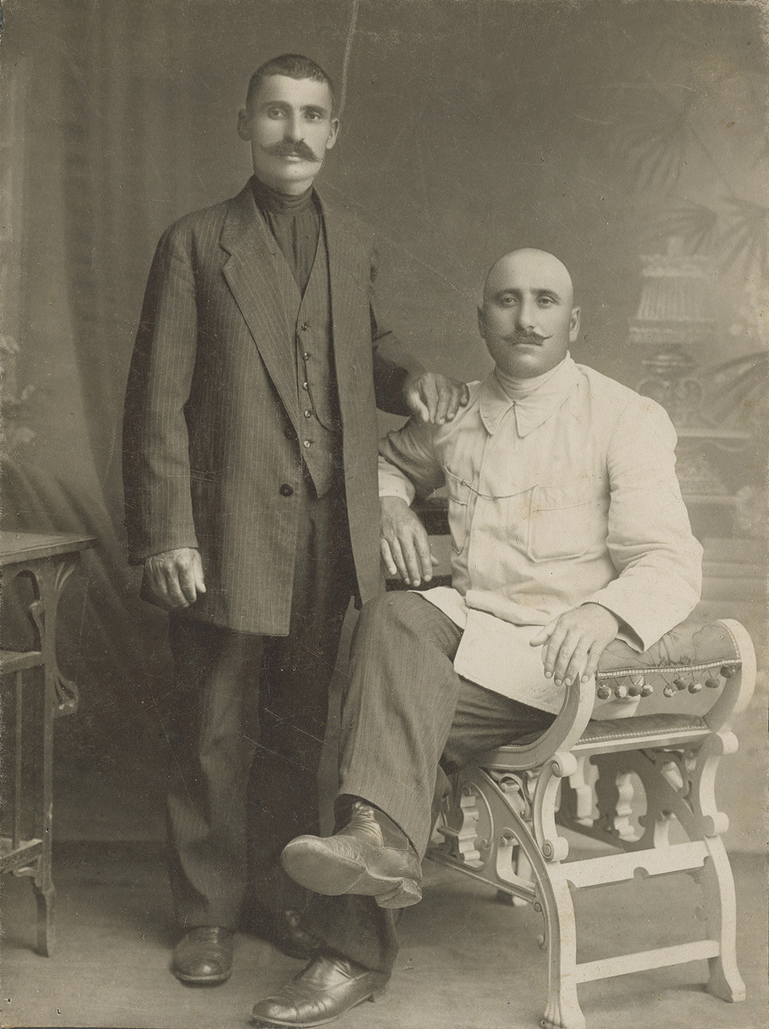R. Babayan was the sole proprietor of one of Baku’s most popular photographic studios, ‘Rembrandt’. Famous in his time, Babayan was a typical example of a photographer-businessman and his establishment prospered during the oil boom in Baku in the 1900s. A number of Armenian writers, such as Shirvanzade, have used Babayan’s personage in their literary works set in Baku. The ‘Rembrandt’ studio produced exclusively portraits of Baku’s middle and upper classes. Babayan’s clientele was cosmopolitan and was not limited to the local Armenian community. His photographs are professionally made, but do not deviate from standard late 19th century studio aesthetics. Though we are not aware of any works by him with ‘artistic’ aspirations, Babayan did participate in an international art show in Belgium where, according to his studio backstamp, he was given a gold medal. It appears that after the advent of Soviet rule in Azerbaijan, the studio was closed or nationalized.