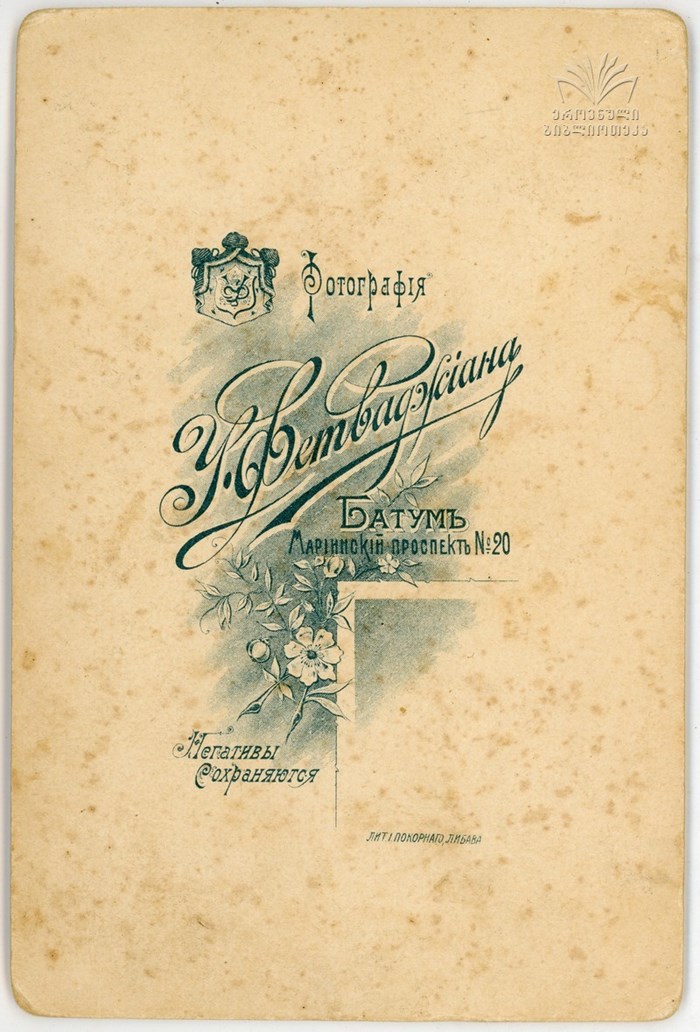Details regarding this photographer’s biography have not come to light in the course of our research. Fetvadjian’s photographic establishment was located in Batumi and was one of the more prominent in this Black Sea town. It operated from the end of the 1900s until the establishment of Bolshevik government in Georgia. There is a large number of surviving portraits produced by this studio and they mostly depict middle and upper middle class residents. Though of excellent craftsmanship, these conventionally styled portraits are very much of their time and are of historical and cultural significance.