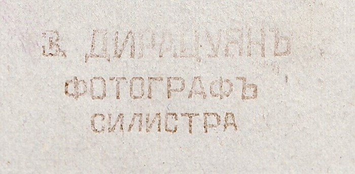 Thestudio of this photographer based in Silistra, Bulgaria, operated in the 1900s and 1910s. Diratsuyanspecialized in making cabinetportraits for family and administrative purposes only. They are of superior quality- skillfully illuminated and composed - but do not differ from the general standardsof commercial studio photographyof the time. It is most likely that Diratsuyanhad moveto Bulgaria from the Ottoman Empire. No other biographical detailshave been discovered.