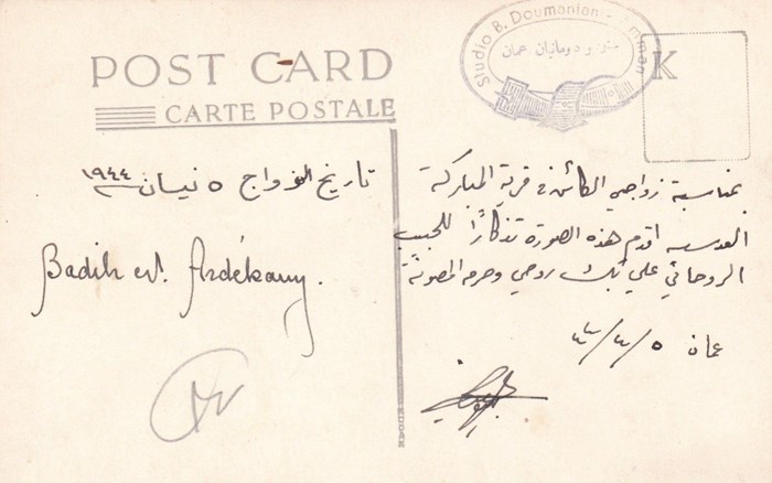 Very little is known about the life and work of this photographer. Doumanian's studio was quite an ordinary affair and serviced the middle and working classes of Jordan’s capital. The known photographs, which bear his seal are principally individual, group and bridal portraits and the photographer does not appear to have produced images in other genres. Even though Doumanyan's photographs barely rise above amateur quality, they are undeniably valuable visual evidence regarding modernity’s social effects in Jordan during the first half of the twentieth century.