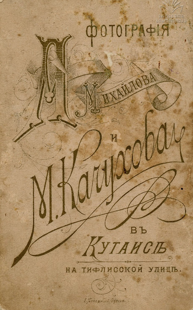 Melkon Kadjkhoyev, began his career in Kutaisi, working in collaboration with a Russian photographer named M. Mikhailov. Their joint venture was located on Tifliskaya street in the center of Georgia’s third largest city. During this first phase of practice, Kadjkhoyev presented himself with the Russified surname Kachukhov. After separating from Mikhailov sometime in the late 1890s, the photographer continued to work independently until the 1910s.