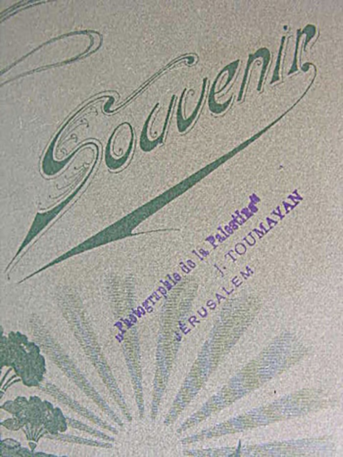 A magazine advertisement in German from the 1910s informs us that Joseph Toumayan’s Jerusalem studio was founded in 1907 and was located opposite the French embassy in Palestine.(1) The notice also presented Toumayan as an official photographer to the Spanish king and prominently featured one of the major attractions of the studio – its large selection of colorful Bedouin costumes and props. Offered by almost all other Armenian and Arab photographers based in Jerusalem such as Garabed Krikorian and Chalil Raad, the ethnic ‘dress-up’ portraiture was a service popular both with tourists and local middle classes alike. This bread-and-butter operation, which had little to distinguish it from the work of his competitors, was supplemented by Toumayan with photographic views of Jerusalem, historical monuments, landscapes, ethnographic types and other types of commercial work.