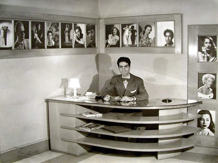 For the past two decades, Van Leo’s photography has grown enormously in stature and is now considered one of the pivotal stages of photography’s development in Egypt. Leon Boyadjian was born into a middle-class Armenian family who had moved to Cairo in the early 1880s. He turned to photography quite early in his life after dropping out of American University of Cairo. At first, Leon worked as an apprentice to Artinian, the proprietor of Studio Venus, before opening up his first premises at his own house in 1941. He was helped by his older brother Angelo, who would go on to become a renowned photographer in his own right. In 1947, the Boyadjian brothers decided to separate and Leon opened his new premises at Studio Metro, located at 7 Fuad Street.(1) Changing his name to ‘Van Leo’, Boyadjian soon achieved popularity in Cairo’s vibrant artistic and bohemian scene. His portraits of Egyptian stars such as Omar Sharif and Loula Sedki were widely distributed in the press and through postcards, making him a well-known brand to an elite clientele. The combination of Hollywood-style glamour, romanticism, sentimentality with electric eroticism, gave Van Leo’s portraits a truly artistic dimension that went beyond the scope of studio portraiture. In fact, each sitter, be it a celebrity or an ordinary citizen was treated in the same way, with the photographer always aiming to find the suitable ‘vision’ for his sitter’s look. Indeed, everyone who came in through the studio’s doors could feel like a star for a moment. Thus each of Van Leo’s portraits is a brilliantly concocted theatrical mask that most likely had little to do with the actual sitter.
